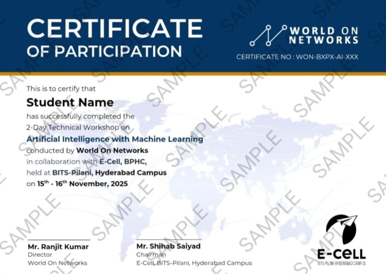 World On Networks in collaboration with the E-Cell, BITS-Pilani, Hyderabad Campus cordially invites you to participate in an exclusive 2-day Technical Workshop. This immersive program is thoughtfully designed to enhance your technical proficiency, strengthen your resume, and strategically position you for career opportunities aligned with your aspirations.